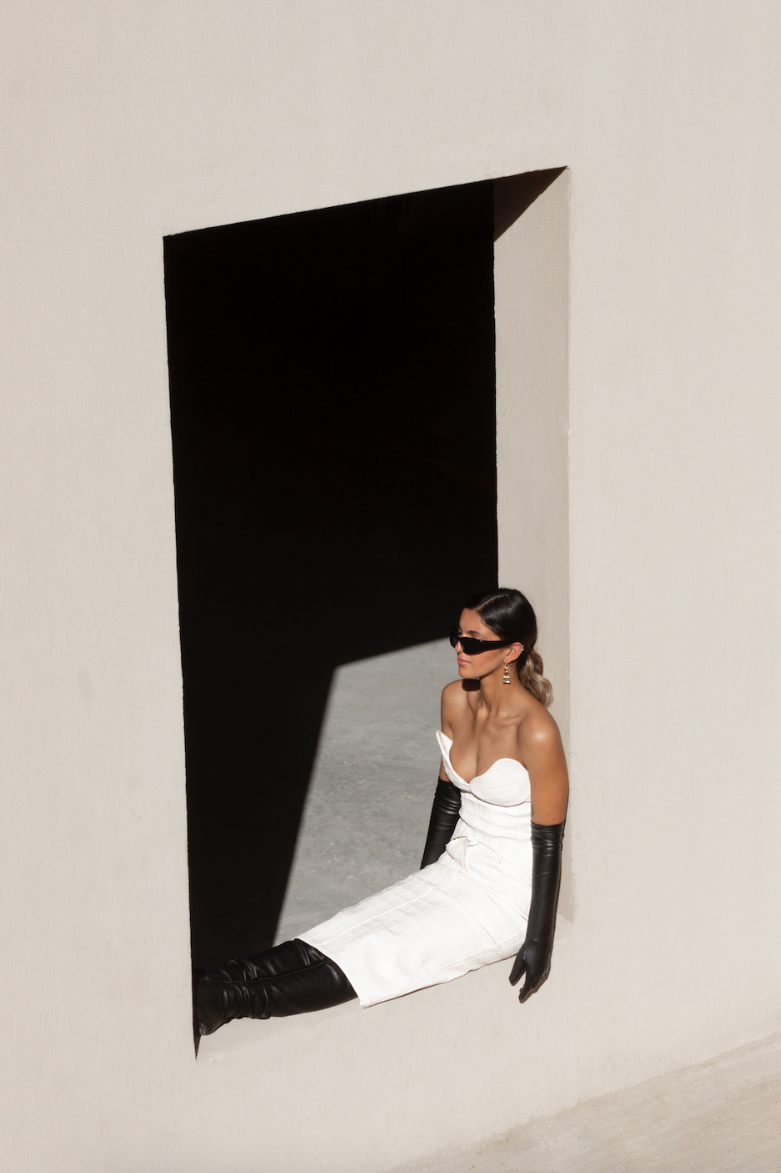Black faux leather gloves.