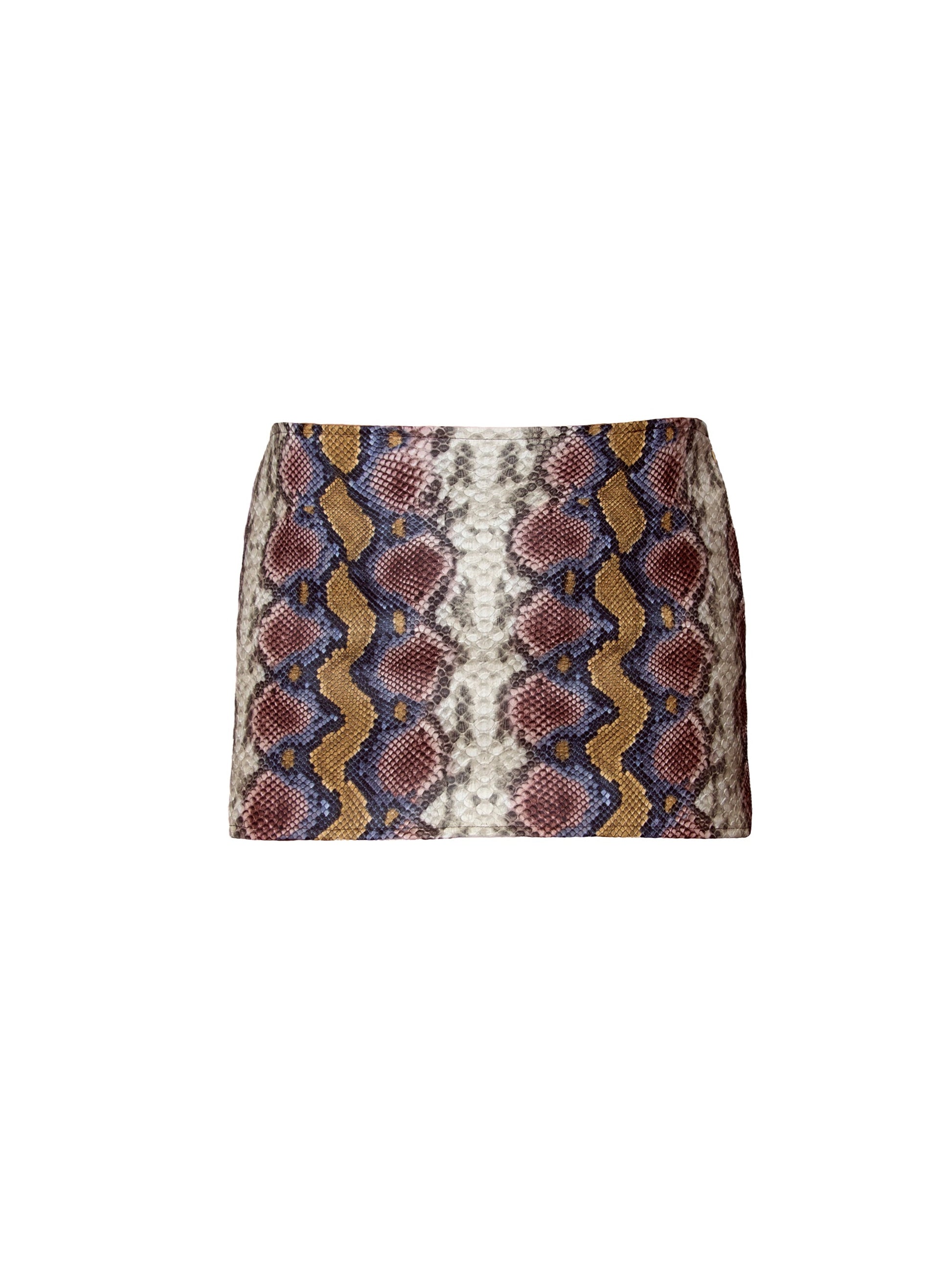 Snake mini leather skirt with invisible zipper.